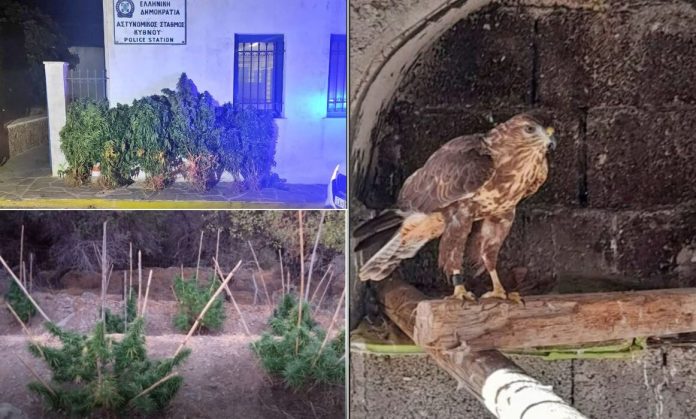 Stranger Things της ΕΛ.ΑΣ. τον Αύγουστο: Φυτεία κάνναβης στην Κύθνο, αιχμάλωτο γεράκι στη Σαντορίνη