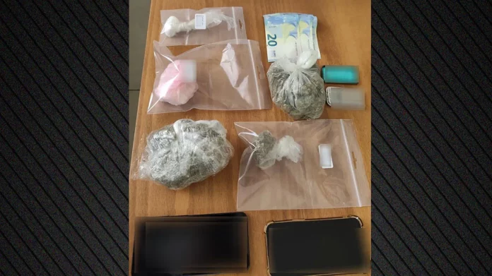 Κατασχέθηκαν, μεταξύ άλλων, κοκαΐνη βάρους 73,4 γραμμαρίων, ακατέργαστη κάνναβη βάρους 161,75 γραμμάριων και ζυγαριά ακριβείας