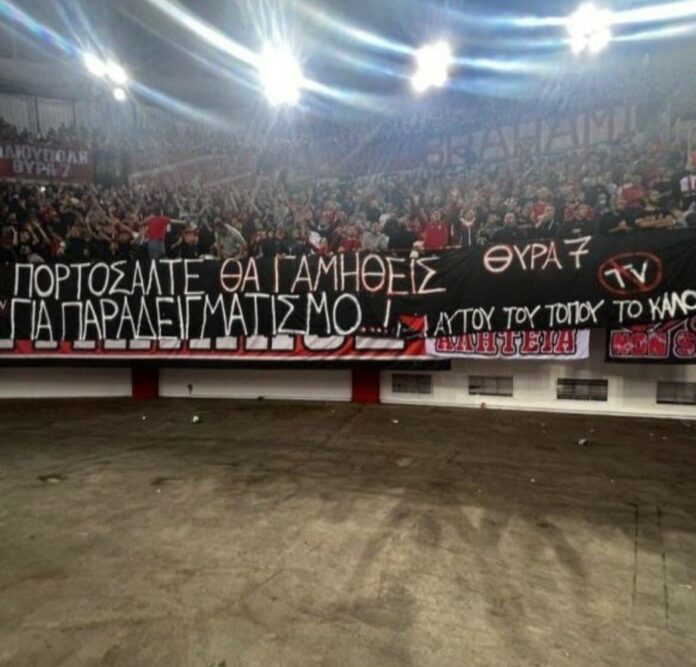 Στα μάτριξ του σταδίου αναγραφόταν η μοιραία ημερομηνία (28/2/2023) και συνοδευόταν από το σήμα του πένθους