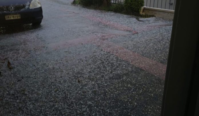 Έντονο χαλάζι στην Αττική. Συνεχίζεται η κακοκαιρία μέχρι το βράδυ.