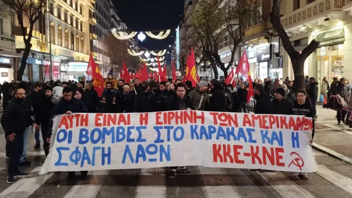 Πορεία διαμαρτυρίας με αφορμή τη στρατιωτική επιχείρηση των ΗΠΑ στη Βενεζουέλα, πραγματοποιήθηκε σήμερα το απόγευμα στο κέντρο της Θεσσαλονίκης από το ΚΚΕ και την...