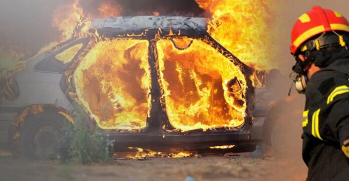 Αυτοκίνητο τυλίχθηκε στις φλόγες έξω από τη Λάρισα – Βγήκαν εγκαίρως από το όχημα οι επιβαίνοντες