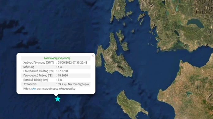 Σεισμός 5,4 Ρίχτερ ανάμεσα σε Ζάκυνθο και Κεφαλονιά