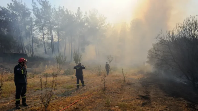 Επιχειρούν 26 πυροσβέστες με 1 ομάδα πεζοπόρου τμήματος, 7 οχήματα και δύο αεροσκάφη