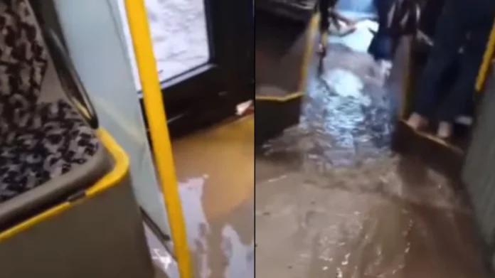 Θεσσαλονίκη: Αστικό λεωφορείο μετατράπηκε σε πισίνα από την ισχυρή καταιγίδα – (VIDEO)
