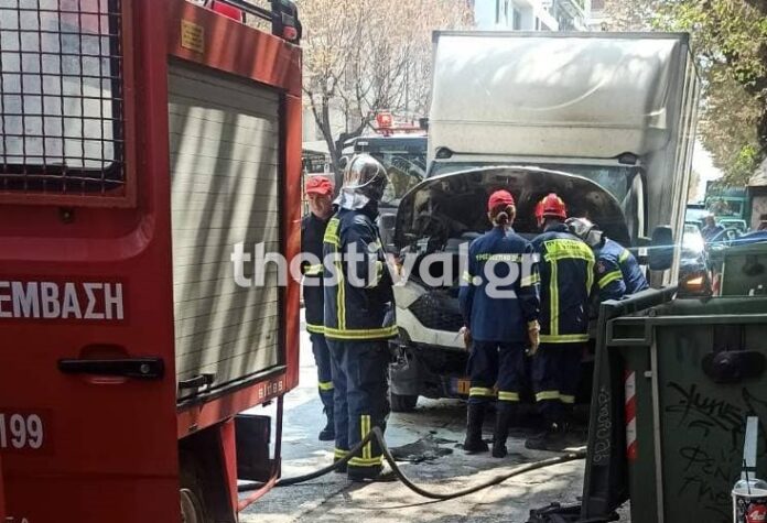 Πυρκαγιά ξέσπασε νωρίς το μεσημέρι της Πέμπτης, σε φορτηγάκι στην οδό Τσιμισκή, στο κέντρο της Θεσσαλονίκης.