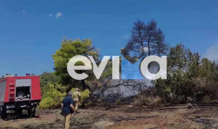 Φωτιά ξέσπασε νωρίς το μεσημέρι της Δευτέρας 15 Αυγούστου, στα Ψαχνά της Εύβοιας σε χαμηλή βλάστηση.