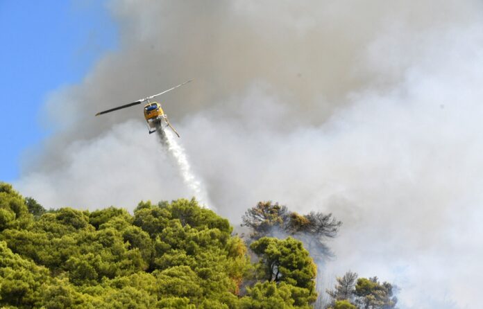 Φωτιά σε δασική έκταση στην Ορεινή Σερρών – Σηκώθηκε ελικόπτερο