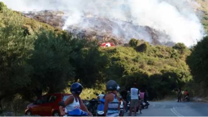 Φωτιά σε χαμηλή βλάστηση στο Καλαμάκι Ζακύνθου, σηκώθηκαν και εναέρια μέσα