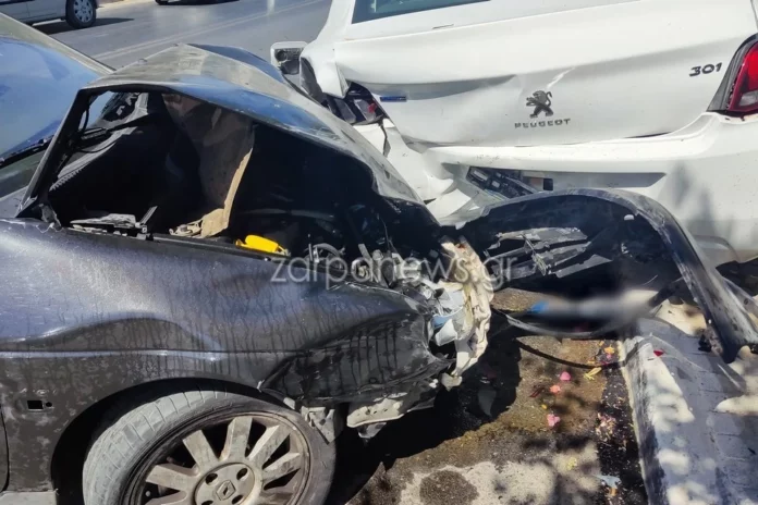 Τρελή πορεία αυτοκινήτου στα Χανιά – Έπεσε πάνω σε σταθμευμένα οχήματα-(ΦΩΤΟ)