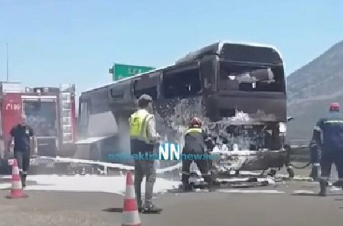 Μεσολόγγι: Λεωφορείο «λαμπάδιασε» στην Ιόνια Οδό – (VIDEO)