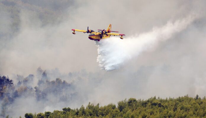 Πάτρα: Ξεκίνησαν να επιχειρούν τα εναέρια μέσα στο μέτωπο της φωτιάς στην Καλλιθέα