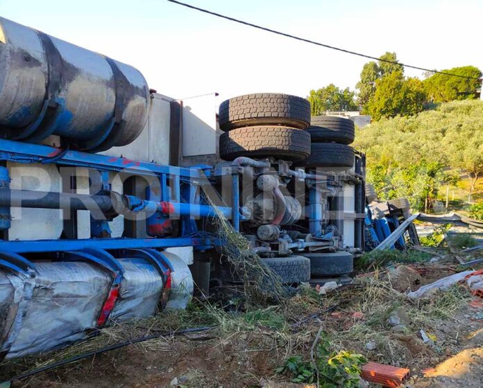 Εκτροπή νταλίκας στην Ε.Ο. Καβάλας-Θεσσαλονίκης – (ΦΩΤΟ)