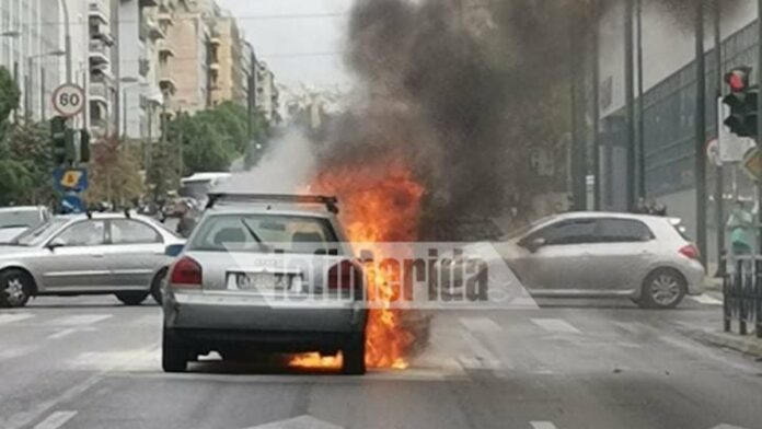 Φωτιά σε αυτοκίνητο στη Συγγρού στο ύψος του Φιξ – Σώθηκαν την τελευταία στιγμή μία γυναίκα και ένα παιδί