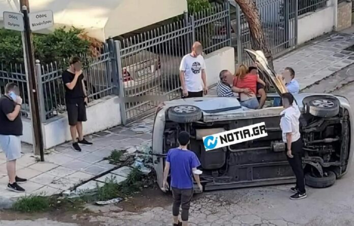 Ένα αυτοκίνητο τούμπαρε στον Άλιμο σε τροχαίο που έγινε το απόγευμα της Παρασκευής στη συμβολή των οδών Μενάνδρου και Ομήρου.