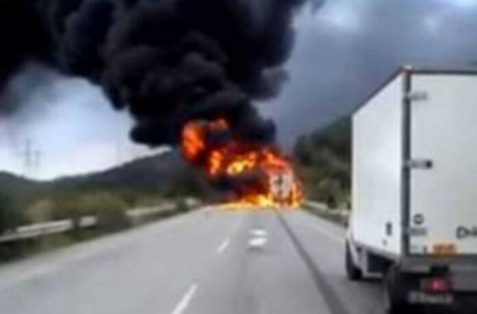 Μεγάλη κινητοποίηση υπάρχει στην Εθνική Οδό Πατρών – Πύργου, καθώς φορτηγό τυλίχθηκε στις φλόγες στο ύψος της Αμαλιάδας.