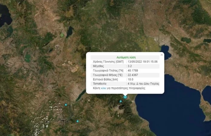 Σεισμός μεγέθους 3,2 ρίχτερ ΝΔ της Κατερίνης.