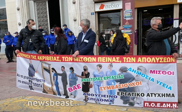 Στους δρόμους οι υγειονομικοί: Συγκέντρωση έξω από το Γενικό Λογιστήριο του Κράτους-(ΦΩΤΟ)