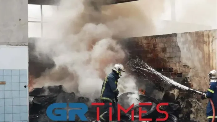Θεσσαλονίκη: Μεγάλη φωτιά σε αποθήκη με ελαστικά κοντά στην κεντρική λαχαναγορά-(VIDEO)