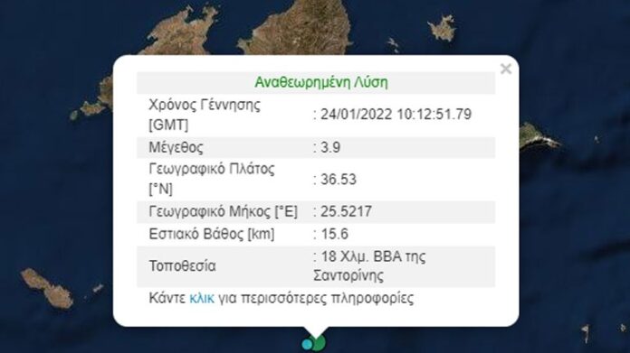 Σεισμική δόνηση μεγέθους 3,9 βαθμών της Κλίμακας Ρίχτερ σημειώθηκε το μεσημέρι της Δευτέρας, στις 12:12, στη Σαντορίνη.