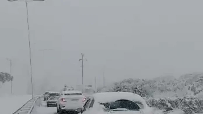 Λεωφόρος Μαραθώνος: Δεκάδες ακινητοποιημένα οχήματα λόγω χιονόπτωσης
