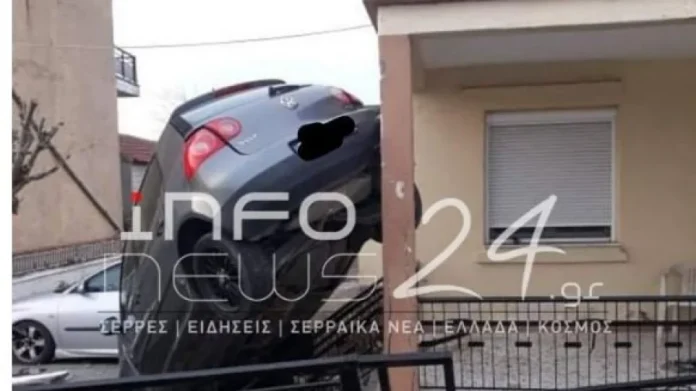 Τα έχασαν οι κάτοικοι της μονοκατοικίας, όταν βγήκαν από το σπίτι και είδαν ένα αυτοκίνητο «κρεμασμένο» στον φράχτη