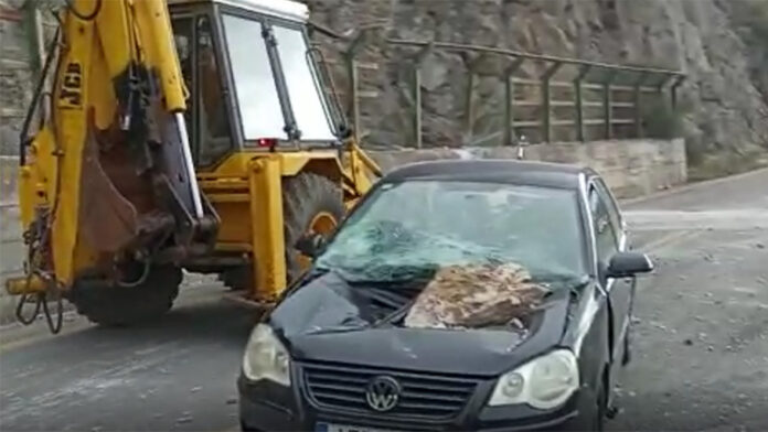 Άγιο είχαν οι επιβάτες που βγήκαν σώοι αλλά σοκαρισμένοι από το αυτοκίνητο – Ο βράχος έπεσε μετά από κατολίσθηση και διέλυσε το μπροστινό μέρος του...