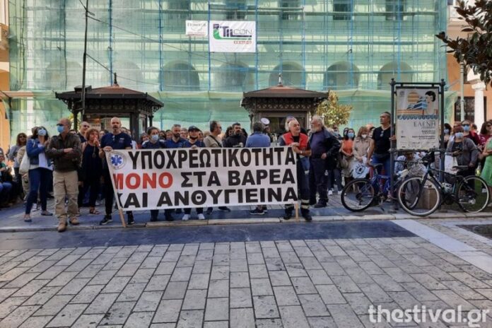 Νέα συγκέντρωση διαμαρτυρίας υγειονομικών στην Πλατεία Αριστοτέλους-(VIDEO)