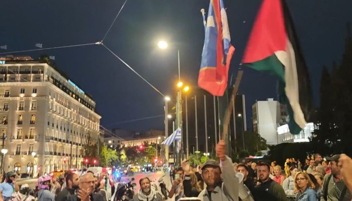 Όμορφες στιγμές στο Σύνταγμα – Μοτοπορεία αλληλεγγύης στην Παλαιστίνη έκανε στάση στο Σύνταγμα για τον Ρούτσι (video)
