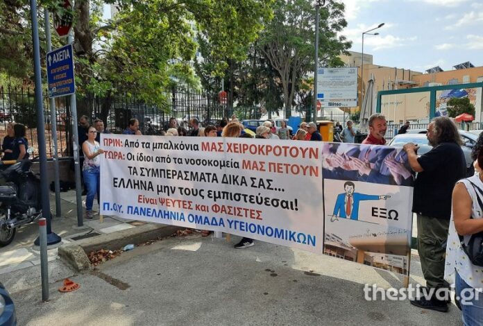 Συγκέντρωση ανεμβολίαστων υγειονομικών έξω από το ΑΧΕΠΑ (βίντεο)