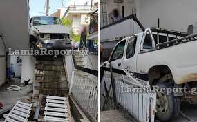 Απίστευτο τροχαίο στη Λαμία: Αγροτικό «μπούκαρε» σε αυλή και σφήνωσε στη σκάλα-(VIDEO-ΦΩΤΟ)