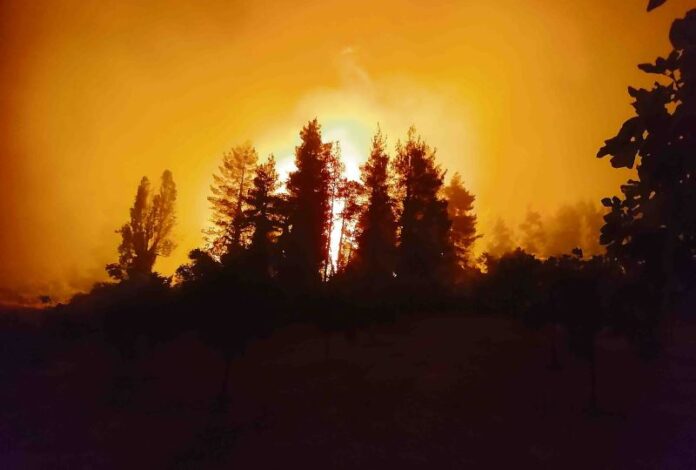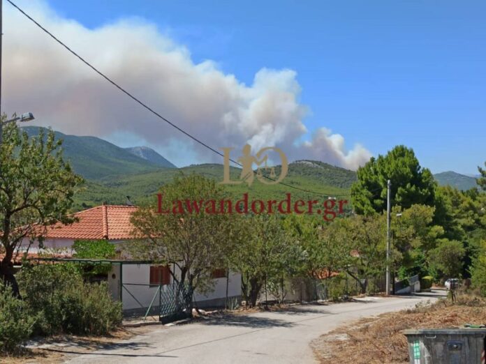 Ζητήθηκε η εκκένωση των περιοχών Άγιος Γεώργιος ή Παλαιοχώρι και Αγία Παρασκευή ή Κρύο Πηγάδι - Στην περιοχή πνέουν ισχυροί άνεμοι - Διακοπή κυκλοφορίας
