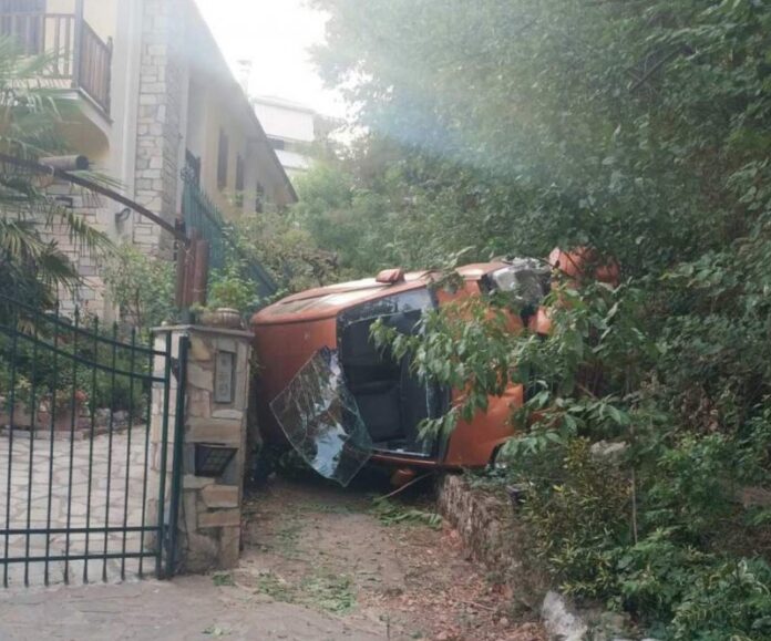 Τρίκαλα: Αυτοκίνητο προσγειώθηκε σε αυλή σπιτιού