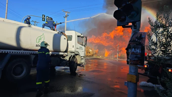 Φωτιά τώρα σε εργοστάσιο με παλέτες στο Μενίδι – Μήνυμα του 112 για επικίνδυνους καπνούς, δείτε βίντεο