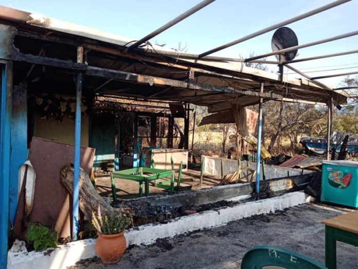 Η γνωστή παραλιακή ταβέρνα Καμίνια στην Τσιχράντα, στον οικισμό της Φιλιάς Λέσβου τυλίχθηκε στις φλόγες.