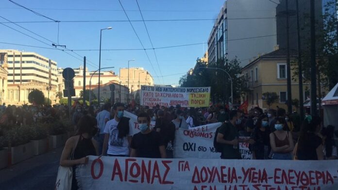 Διαμαρτυρία κατά του εργασιακού νομοσχεδίου στο κέντρο – Κλειστές Πανεπιστημίου-Σταδίου
