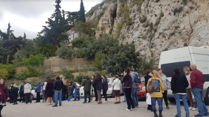 Ουρά από πιστούς στο εκκλησάκι των Αγίων Ισιδώρων στο Λυκαβηττό