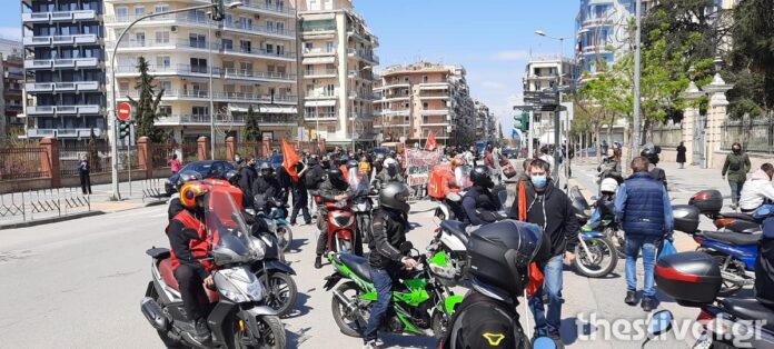 Μοτοπορεία προς το υφυπουργείο Μακεδονίας και Θράκης, στη Θεσσαλονίκη, πραγματοποίησαν το πρωί της Τρίτης, διανομείς.