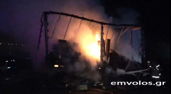 Ημαθία: Φορτηγό τυλίχθηκε στις φλόγες ενώ βρισκόταν εν κινήσει (video)