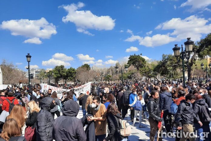 Φοιτητικό συλλαλητήριο βρίσκεται σε εξέλιξη αυτή την ώρα από φοιτητές και μαθητές στο άγαλμα Βενιζέλου, στη Θεσσαλονίκη.