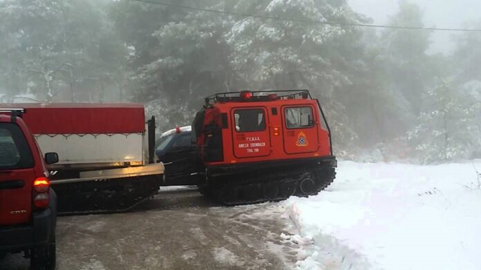 Δέκα άτομα εγκλωβίστηκαν στα οχήματά τους εξαιτίας της σφοδρής χιονόπτωσης σε Αττική και Χαλκίδα.