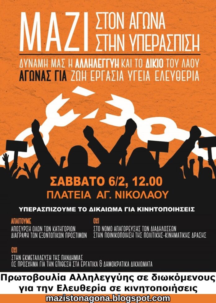 Διαμαρτυρία το Σάββατο στον Αγιο Νικόλαο για το Νόμο κατά των συγκεντρώσεων