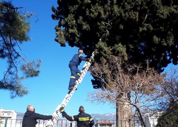 Εγκλωβισμένο σε δέντρο παρέμενε για τέσσερις ημέρες γατάκι στον Βόλο