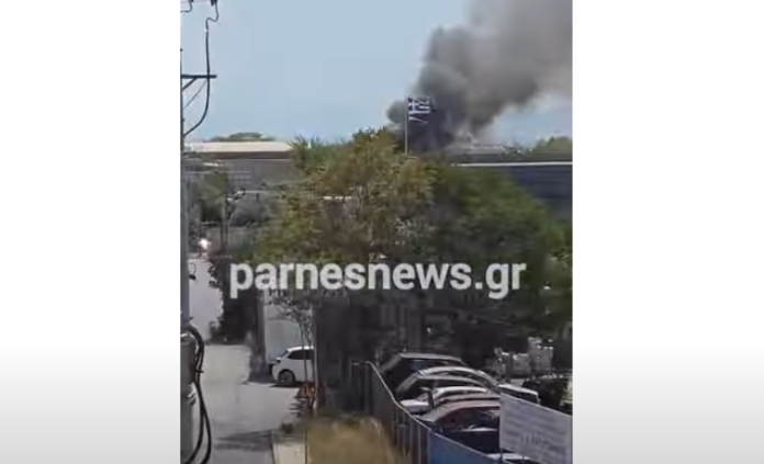 Φωτιά στο Μενίδι: Καίγεται αποθήκη