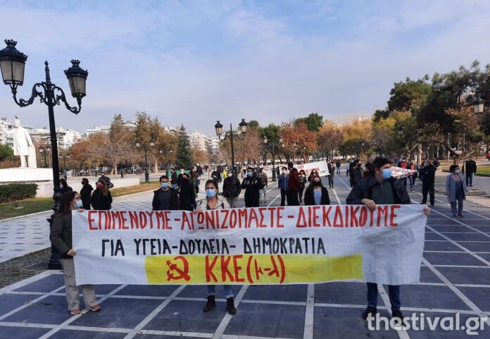 Συγκέντρωση διαμαρτυρίας πραγματοποίησαν το πρωί του Σαββάτου συλλογικότητες, μέλη εργατικών σωματείων και μέλη της εξωκοινοβουλευτικής αριστεράς στο κέντρο της Θεσσαλονίκης.