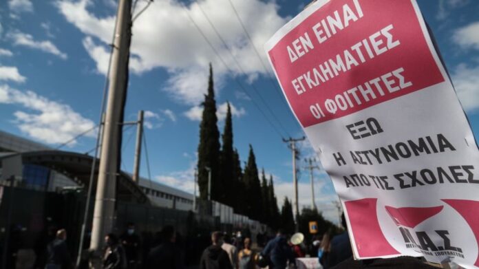 Συγκέντρωση φοιτητών στα Προπύλαια κατά της πανεπιστημιακής αστυνομίας