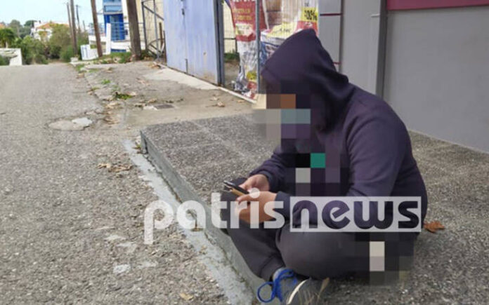 Ένας 12χρονος από την Αμαλιάδα, μαθητής της Α' Γυμνασίου, κάθεται στο πεζοδρόμιο και κάνει τηλεκπαίδευση φορώντας κουκούλα, με ένα κινητό...