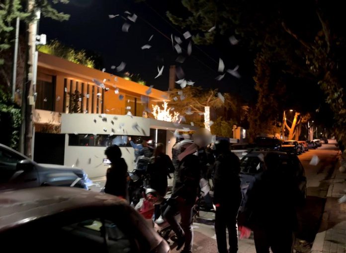 Ρουβίκωνας: Παρέμβαση στο σπίτι του Ευάγγελου Χρυσάφη, προέδρου της ΜΕΤΚΑ και αντιπροέδρου της METLEN στη Φιλοθέη, για τον θάνατο του εργάτη στο εργοτάξιο-νεκροταφείο του Ελληνικού