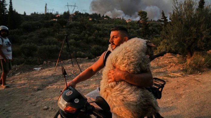 Αχαΐα: Νεαρός με μηχανάκι παίρνει στην αγκαλιά του πρόβατο και το σώζει από τη φωτιά (Photo)