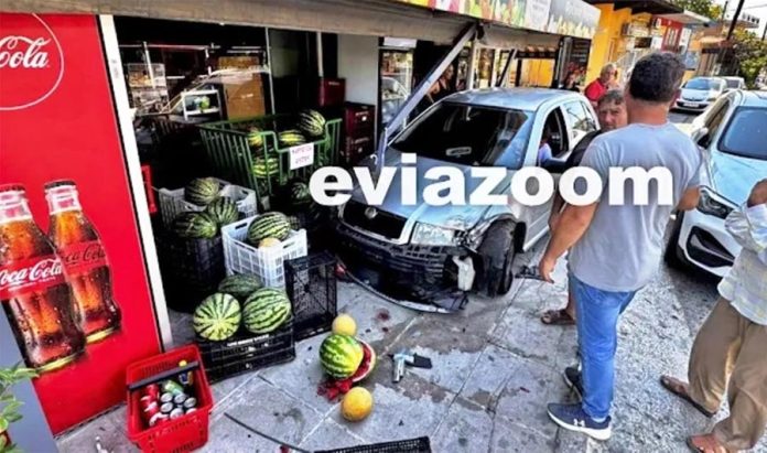 Χαλκίδα: Αυτοκίνητο έπεσε σε σταθμευμένο όχημα και κατέληξε μέσα σε μανάβικο